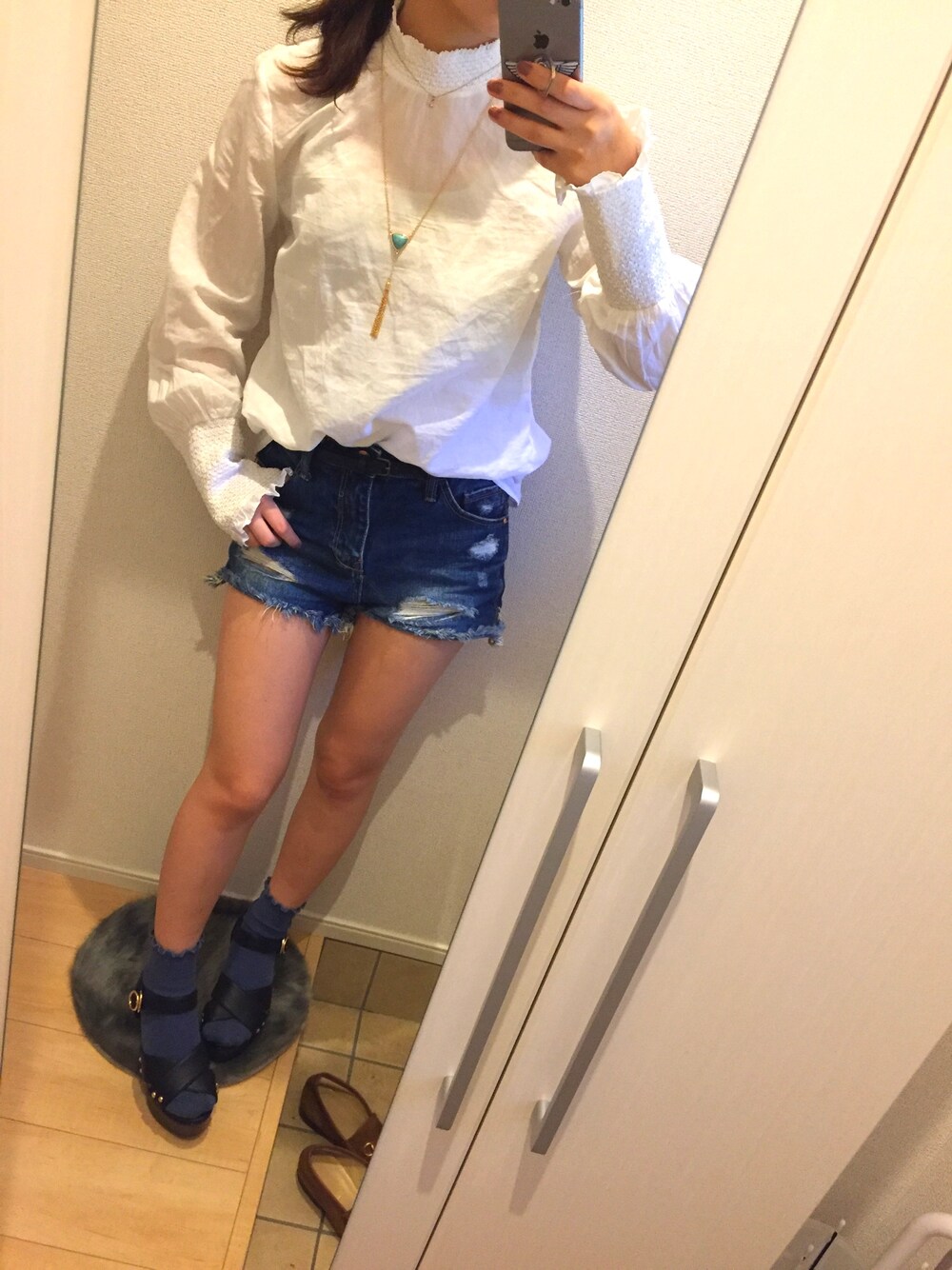 お気に入りの白シャツ、何にでも合うから重宝してます! サンダル&くつしたは夏になる前にたくさん着たいね