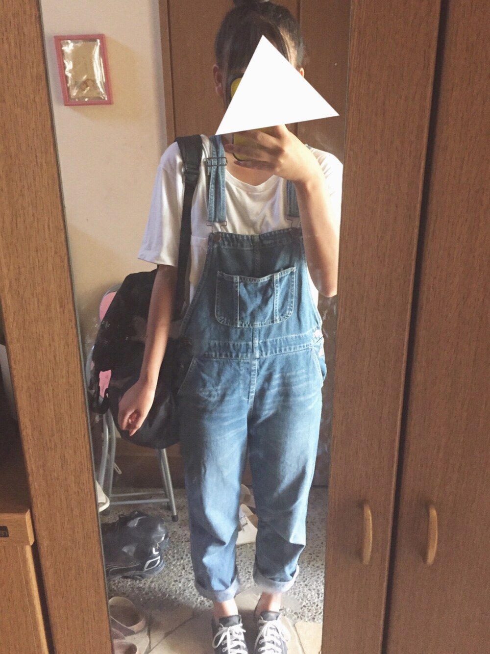 ブルー系のつなぎ/オールインワン、ブラック系のスニーカーを着用したレディースの夏コーディネートの1枚目の写真