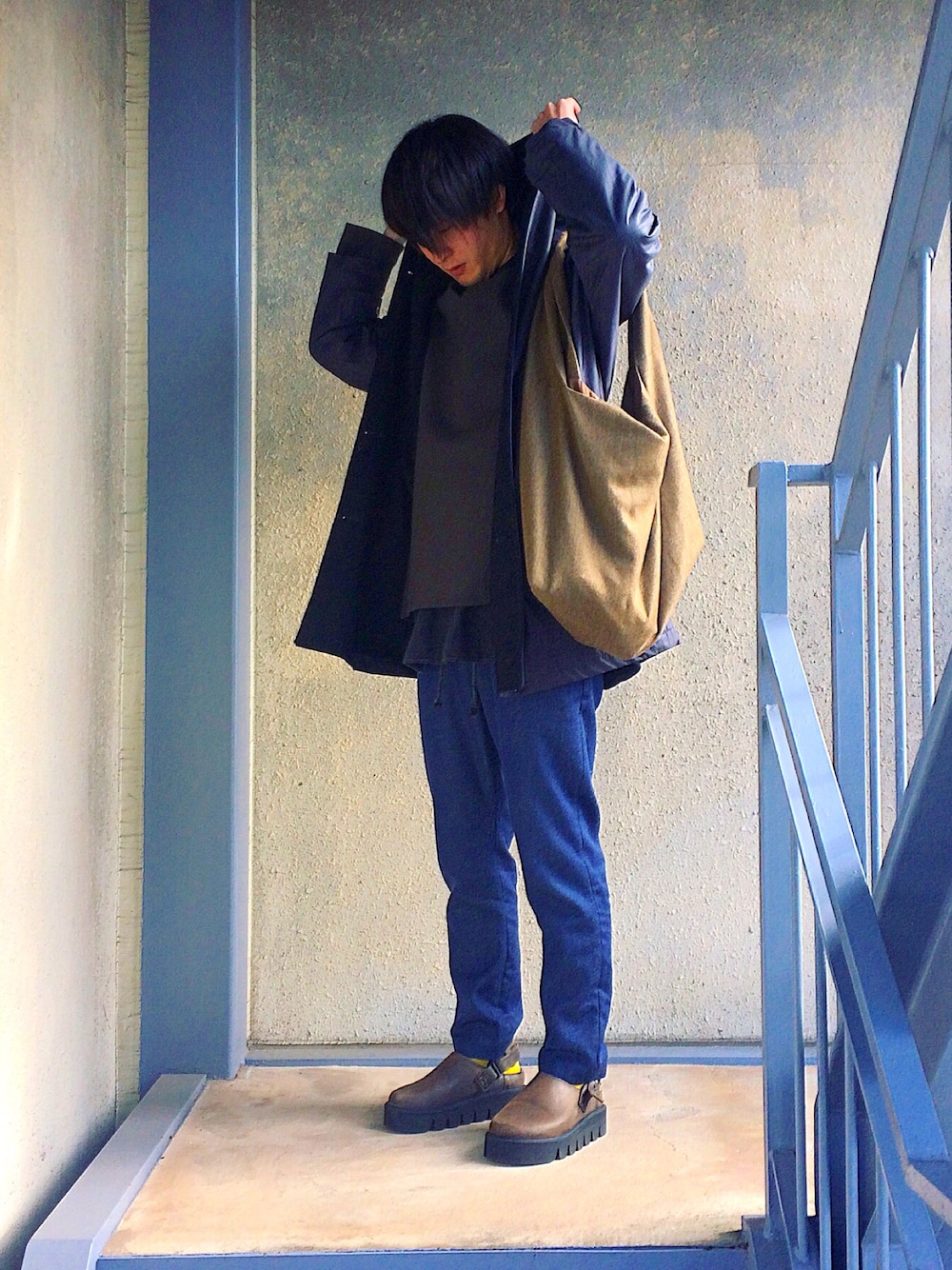 今日はかなーり寒い日でした。 大学生の頃から着ているアナクロのロングシャツと、去年購入したリラクスのメルトンプルオーバー、そして今年購入した、イングランドのブランドのアウターで。 パンツは大好きなヘルスパンツ。