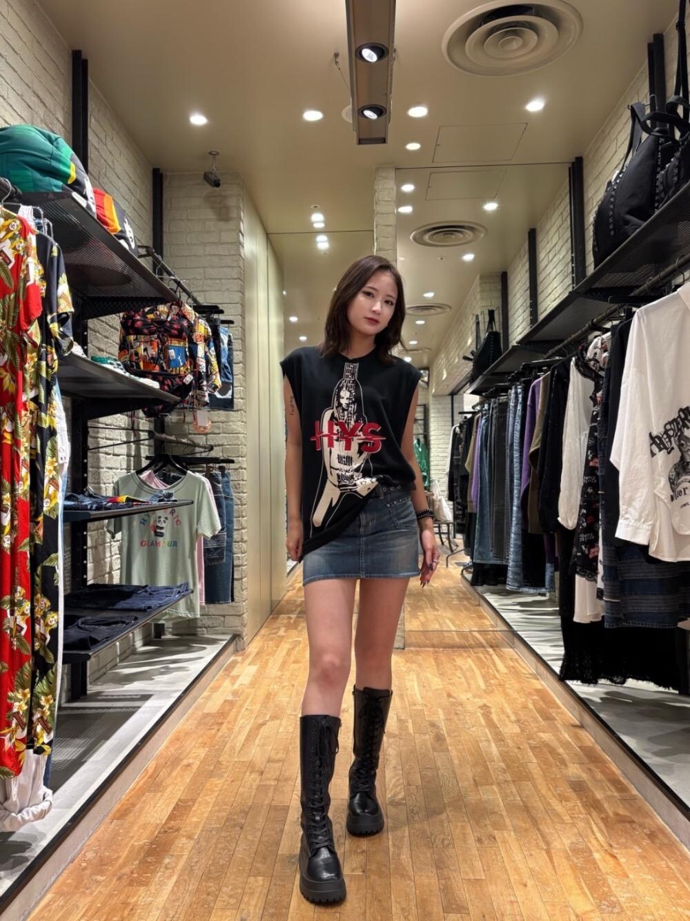 SUMIKA(HYSTERIC GLAMOUR横浜ジョイナス店)のデニムスカート「バックレースアップ マイクロミニデニムスカート」を使ったコーディネート