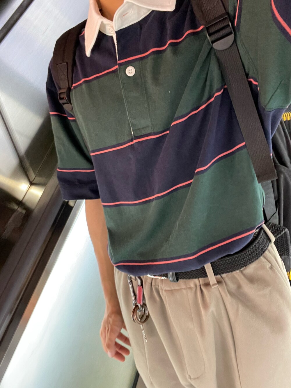 ユニクロのラガーポロシャツがとてもかわいい、、!今値引きされて1290円なので是非買ってみてください☺︎