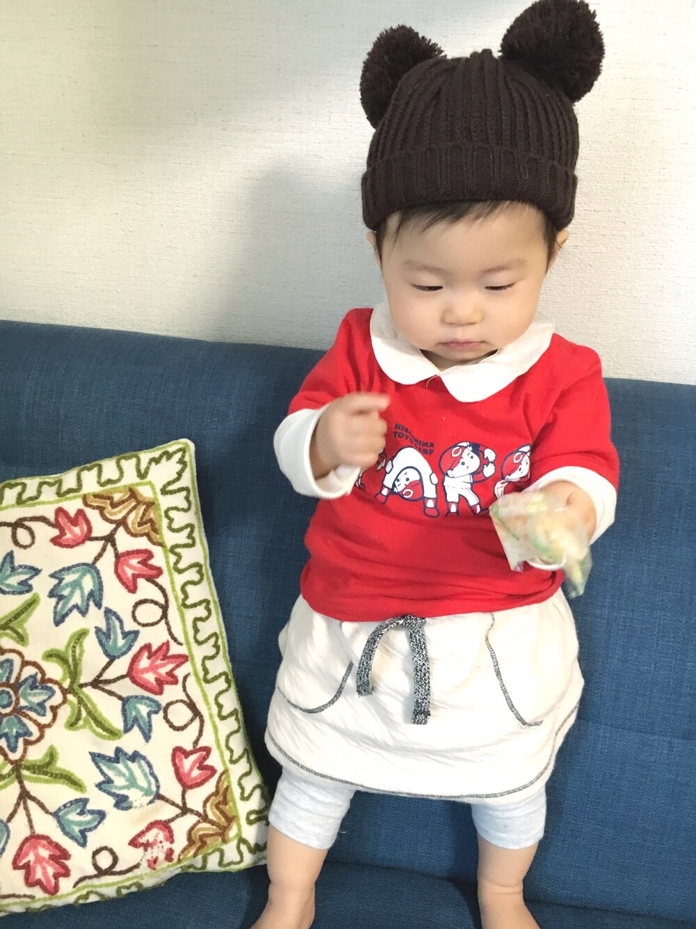 いつも見て頂きありがとうございます😌🙏💗 今日はカープ選手のお見送りに行ってきました🎌🙌 どうしてもカープTシャツ着せたくて、コーデがバラバラ😂💦 完全に親の趣味に付き合わせてしまった😂 お見送り中はすごくいい子にしてくれてて、たくさんの選手を見ることができました😍💓 ホントはレギンスなしでもいいくらい今日はあったかかったけど、ばぁばが、お腹冷えたらいけん!って履かせてくれてた😂❣️ 襟付きのgapロンパースはすごく使いやすくてお気に入りです😍😍 明日からまた日本シリーズ⚾☝ カープ頑張れー📣💕