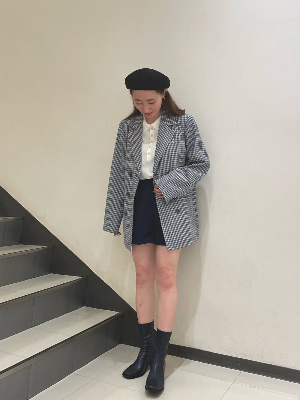 ギンガムチェックが 春夏っぽくてとても可愛い、💙 袖まくっても着れるから おすすめのジャケット! 色味を統一させました!!