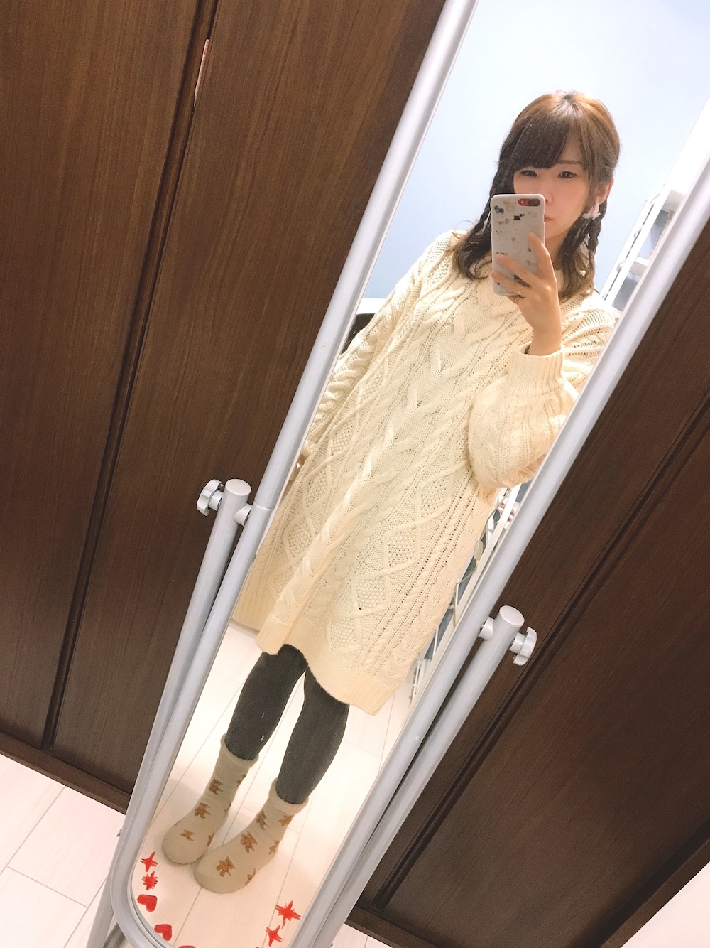 スモーモのワンピース「ベルト付モックネック/ケーブルニットワンピース」を使ったコーディネート