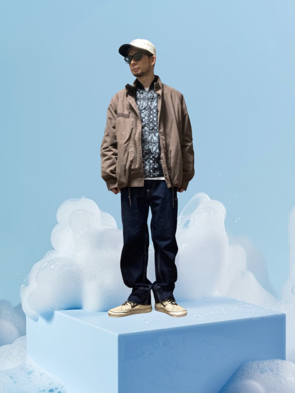薄手のリバーシブルジャケットのバンダナ柄側をインナーにしてみました 3枚目は総柄丸出しは恥ずかちぃポーズ ご覧いただきありがとうございます 心より感謝申し上げます