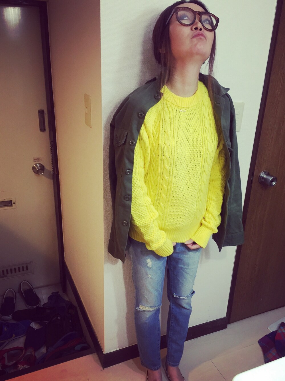 ポイントは靴が脱ぎ散らかってる玄関。 そして、小生意気な口元。 黄色で開運 スプリングハズカム!!!!