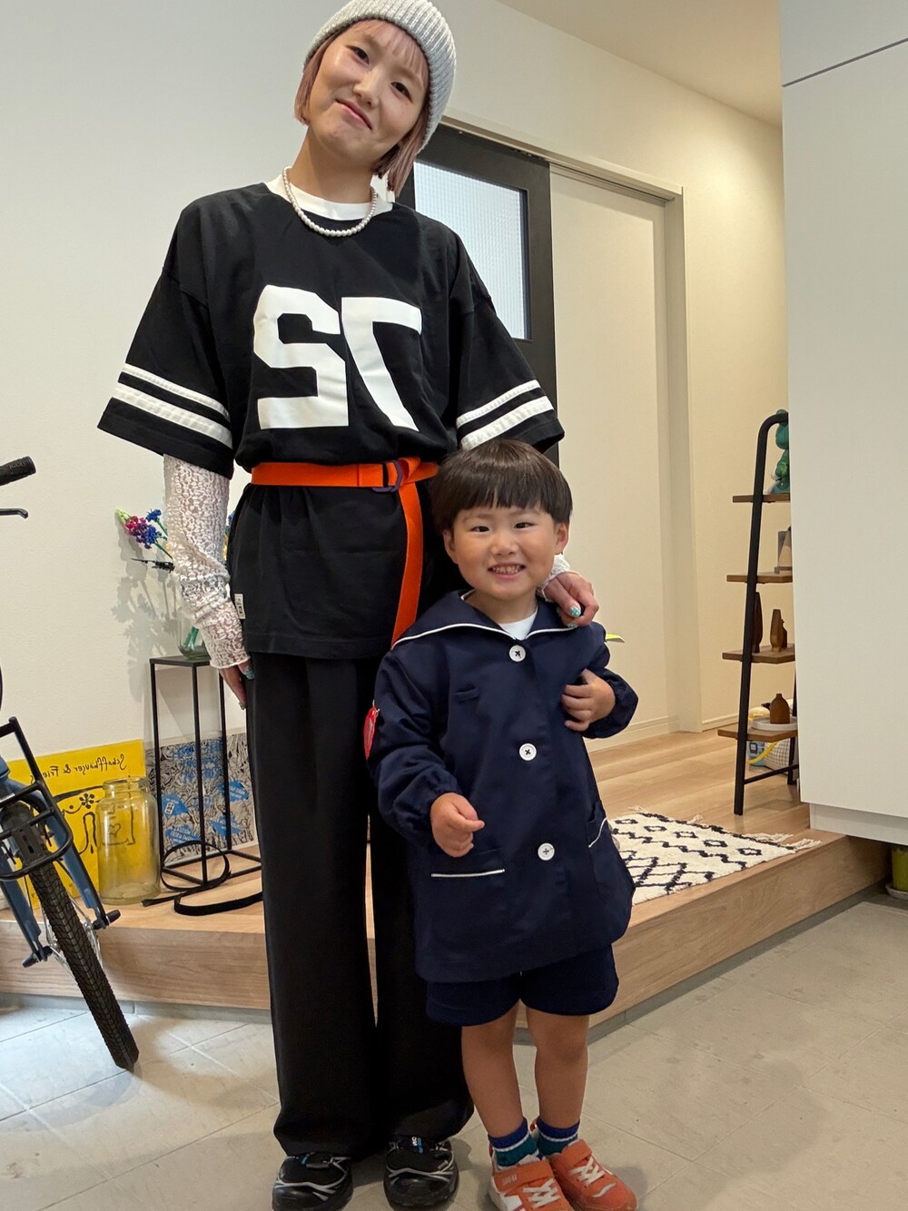 ビッグシルエットのTシャツに ポイントでベルト〜🍊 メンズライクなのでレースのインナーと パールのネックレスでバランス◎