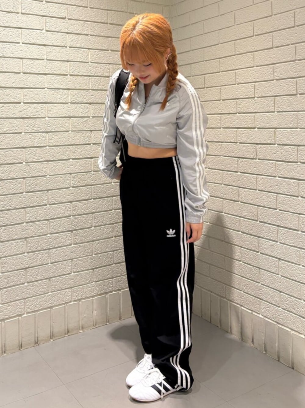 🈁(アディダス オリジナルスショップ 横浜ビブレ)のナイロンジャケット「アディカラー チームガイスト クロップド トラックトップ / ジャージ / トラックジャケット / アディダスオリジナルス adidas Originals」を使ったコーディネート