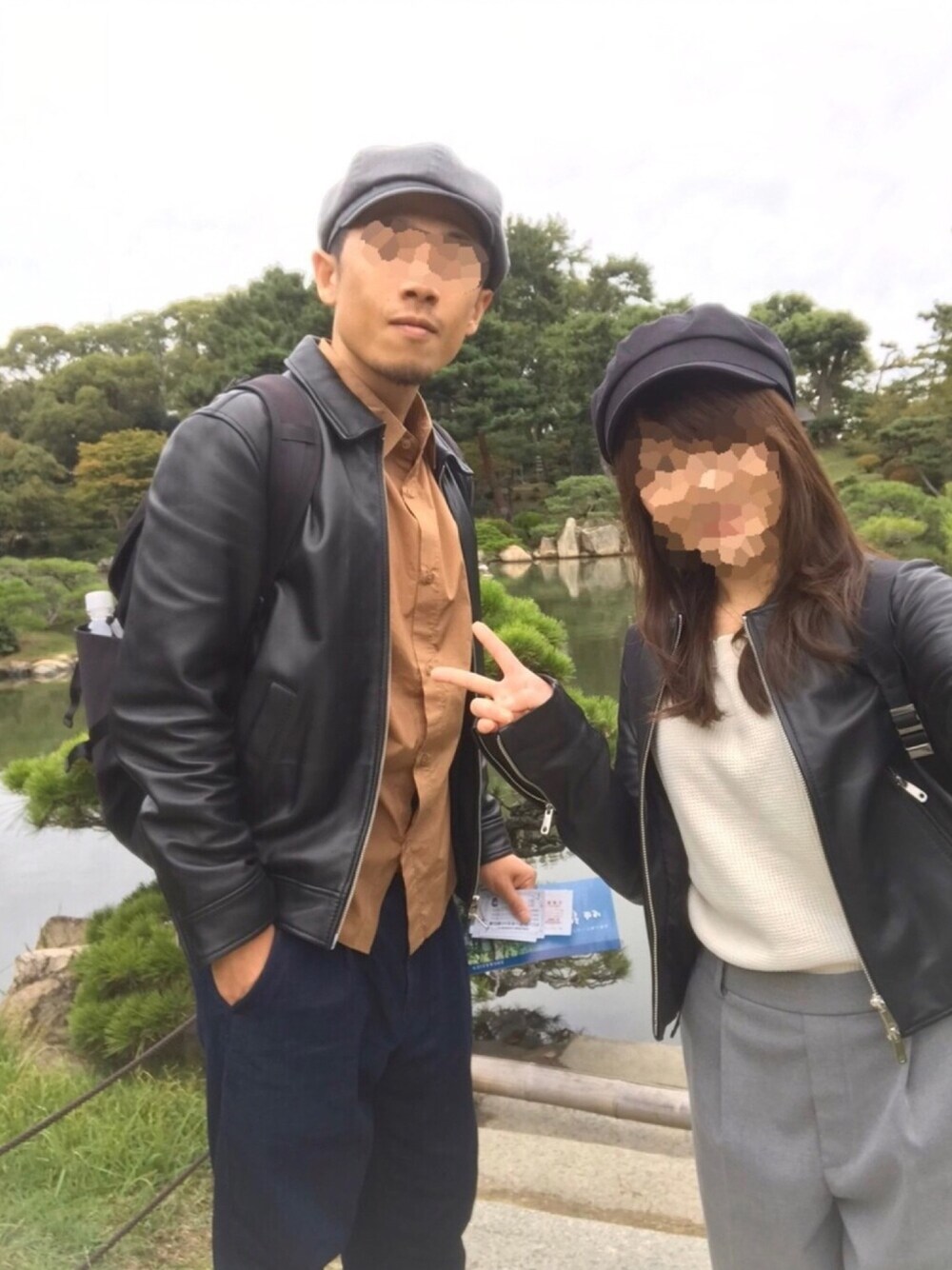 暇つぶしにWEAR始めてみたので 今までのコーデ追加 遡り中 秋 旅行☀️ リンクコーデ ・キャスケット ・ライダースジャケット ・スニーカー:スタンスミス