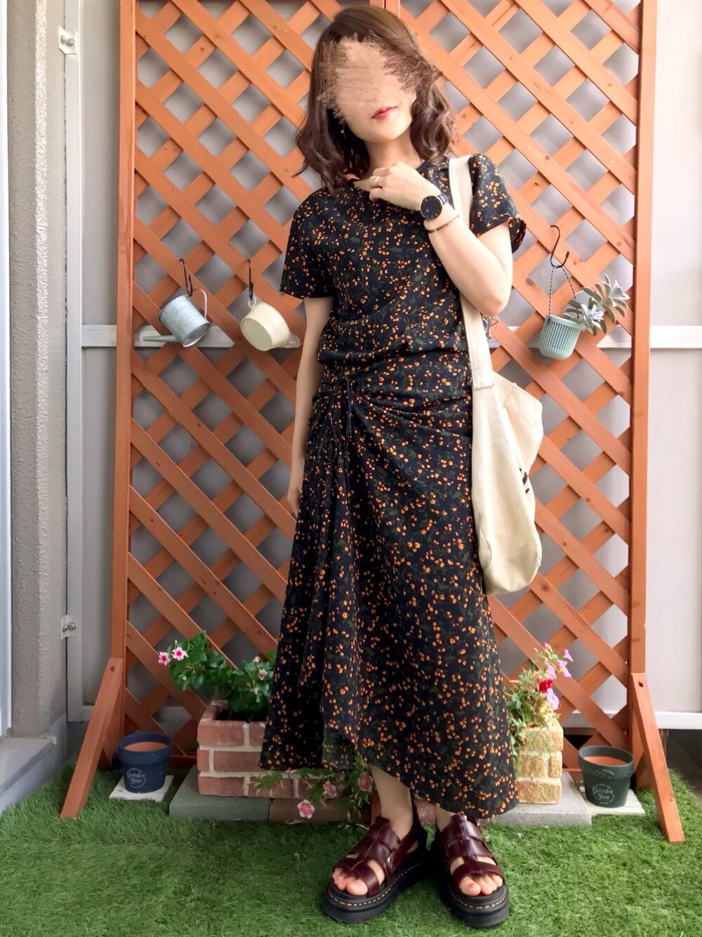 ちゃばのワンピース「アニマルプリントタックワンピース」を使ったコーディネート