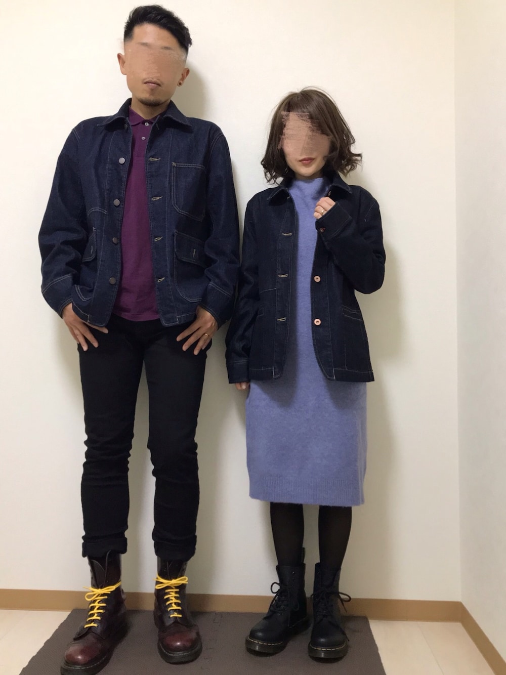 🧥休日コーディネート👖 🙋♂️[174cm] 🙋♀️[148cm] ver. •デニムジャケット •パープル×ブラック •Dr.Martens:旦那の10ホールへのこだわり.
