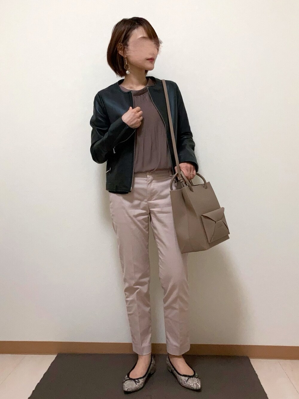 🧥着回しコーディネート👖 勉強中✏︎ キレイめに ライダースジャケットとパイソン柄の 辛味をプラス。 トップスとパンツ 昨年も登場したお気に入り合わせ. 今期も採用!