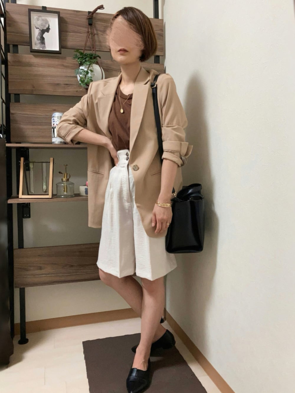 👜着回しコーディネート🥿 まだ夏。でも どーうしても ジャケットを合わせてみたかった。 外に出る瞬間から脱ぎ捨てて 安定のノースリーブTシャツ🌻