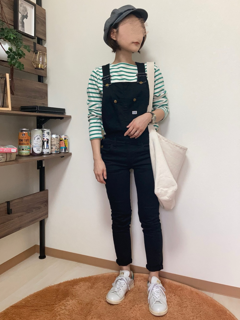 👟着回しコーディネート👖  ボーダー•サロペット•スニーカー  とことんカジュアル♪♯♭