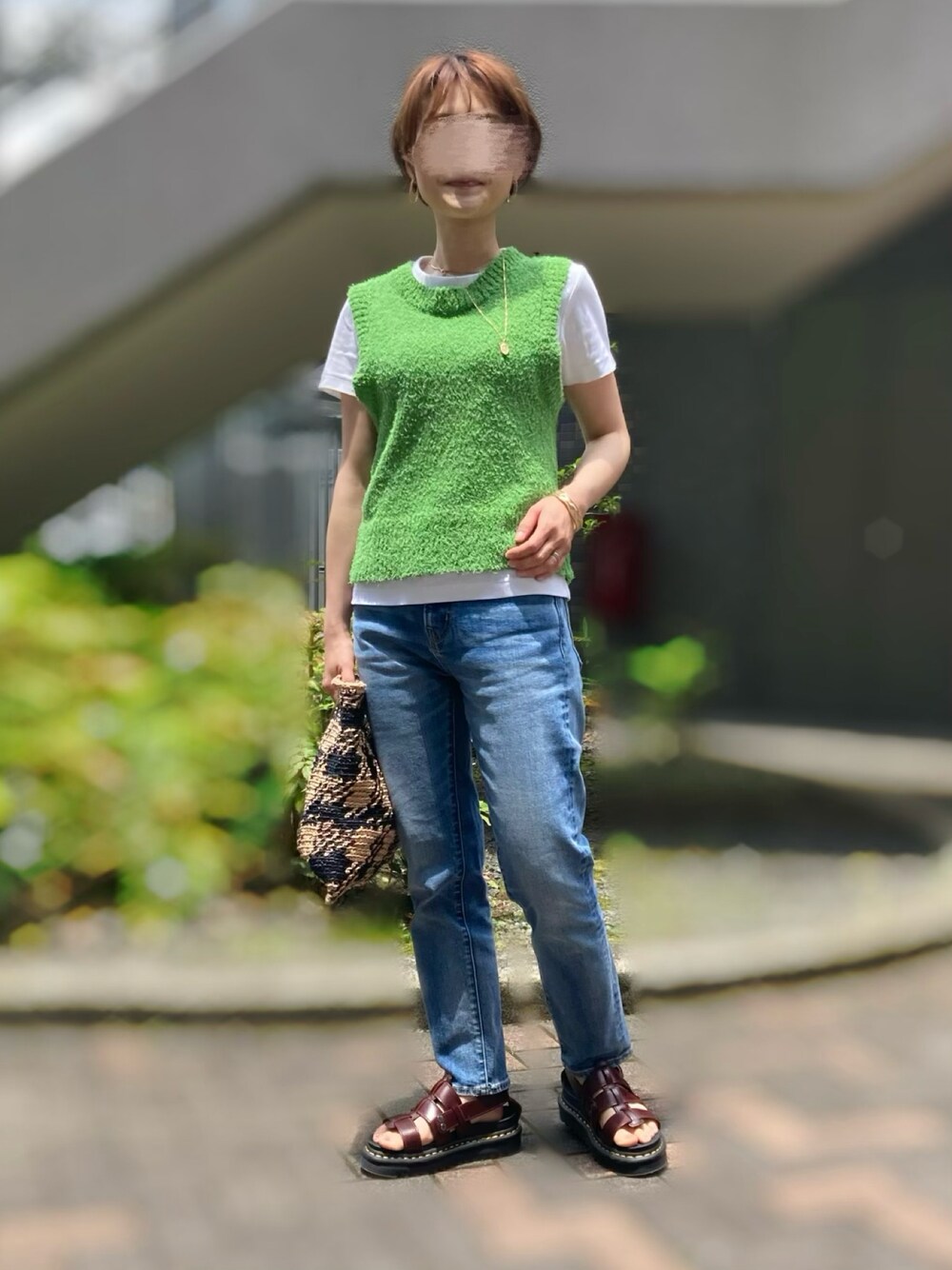 ちゃばのニット/セーター「コットンナイロンヤーン ショート ニット ベスト -ウォッシャブル-」を使ったコーディネート