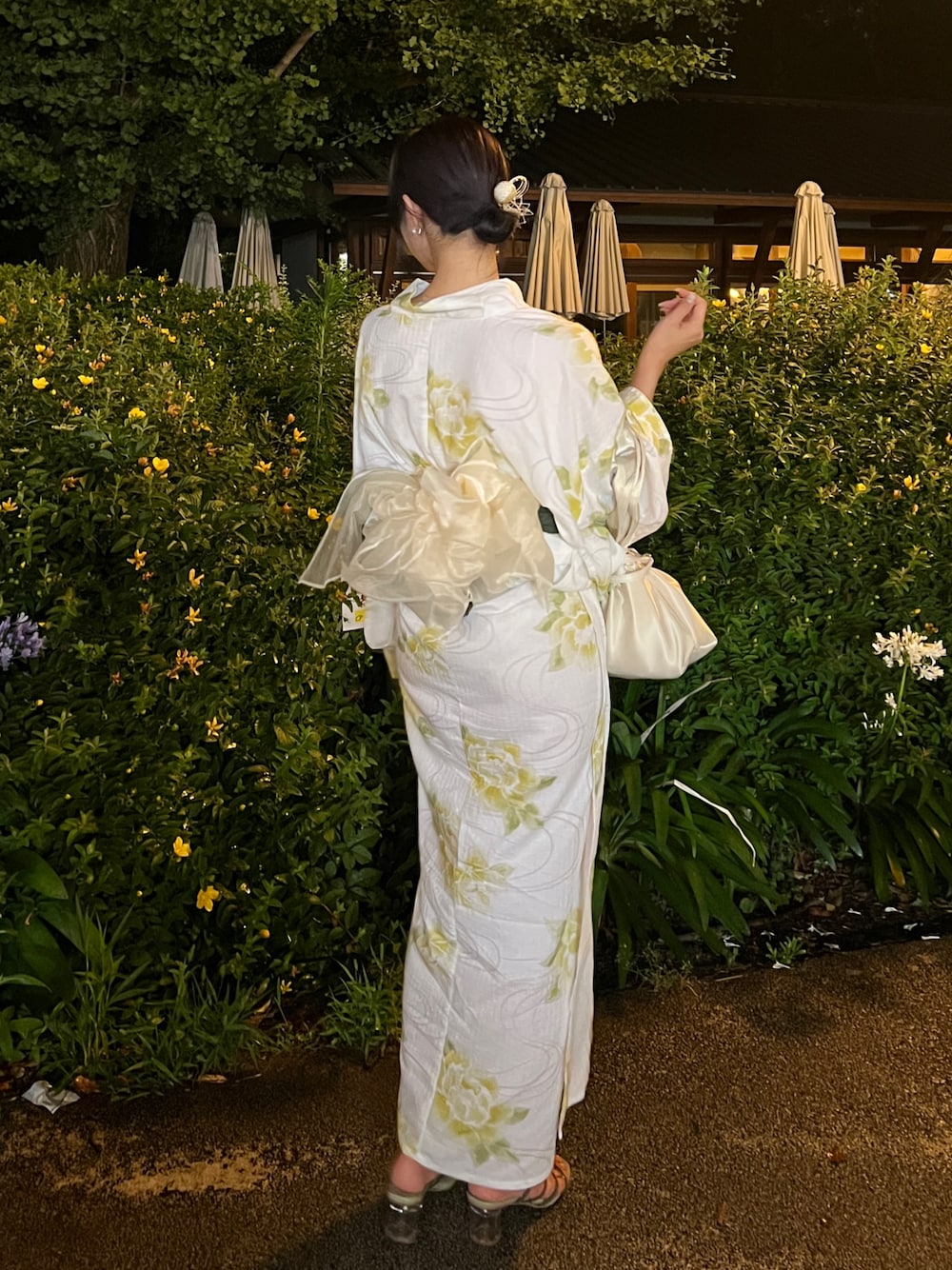 samayuのハンドバッグ「サテンフリルハンドバッグ」を使ったコーディネート