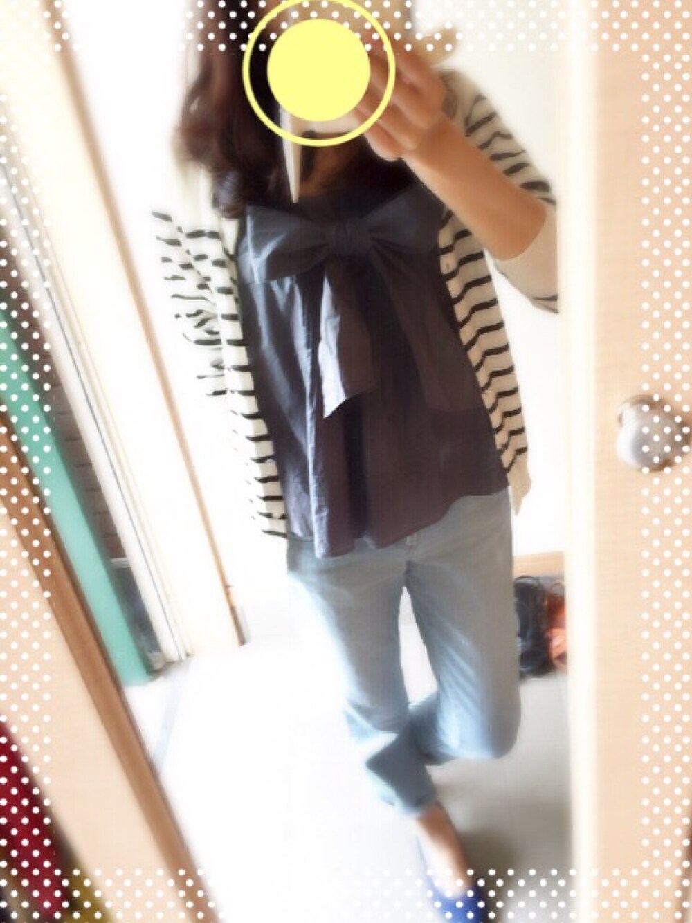 あんまり天気よくないですね( ˙-˙ ) でもあったかいです。 今日はでっかいリボンが主張しまくりのタンクトップに、ボーダーカーディガン。 肩掛けしたかったけど、肩掛けは寒いわ。笑 デニムはいつものUNIQLO。笑 ヤメゴク撮ったのみたら、 出かけようかなーんヽ(゚∀゚)ノ