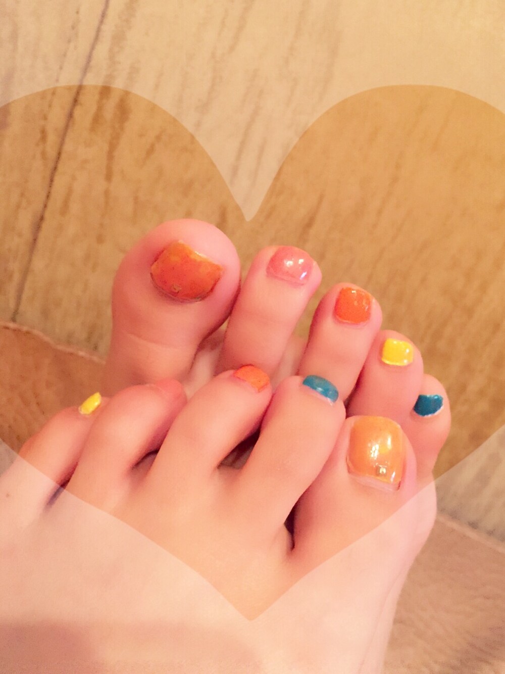 現在のフットネイルです。 味噌汁作るのにお湯を沸かしている間に更新。笑 前のネイルも好きだったけど、今回のcolorful nailもすき♡!ほぼ100均nailです。 次はどういうのにしようかな? そして今日はshoppingで素敵なトップス見つけました✡いい日になったなー*\(^o^)/* 明日から仕事やだなー*\(^o^)/*笑
