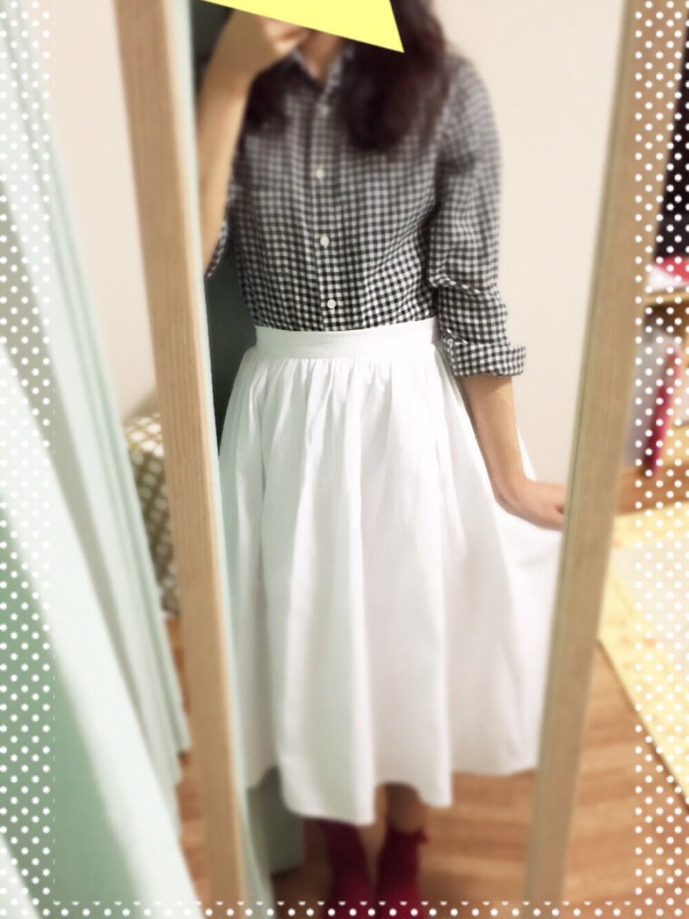 同期とご飯コーデ。 UNIQLOのフランネルシャツに urbanResearchの白スカートに 赤い靴下に UNIQLOの白いスリッポン🌷✨ 仕事終わりに行きました🍷 楽しかった〜💕 そのあと少し散歩もしました✨ 秋風が涼しい季節になりましたね🍁✨