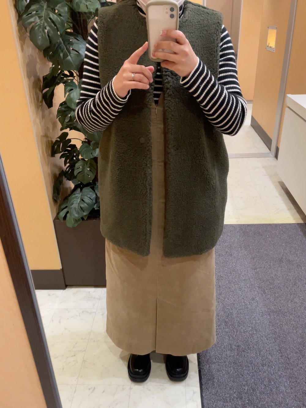 数年前のGUのタートルネック引っ張り出して着た(^^) このボアベストめっちゃあったかくて良き。