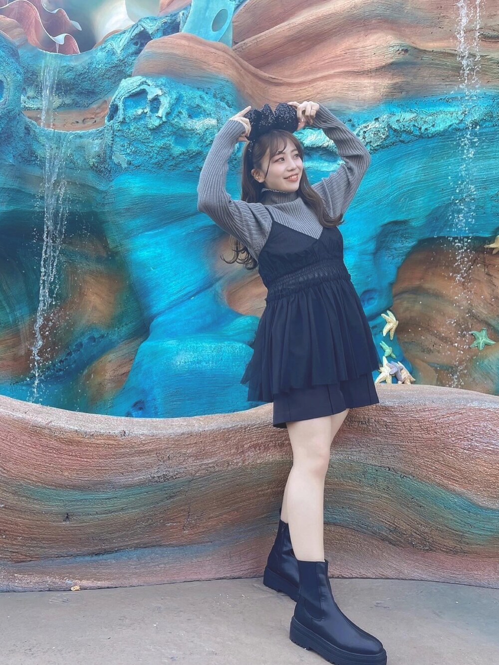 ディズニー黒コーデ🐭🖤 今の時期は寒いのでこれにコートを着てます🧥