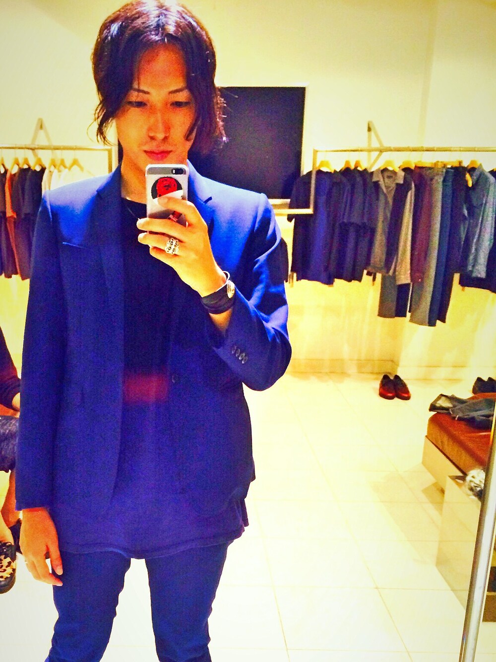 この前の更新と同じになってすいません^o^ セットアップって事なので更新しました! 代官山店内で撮った写真です! やっぱり青っていいなぁって感じながらこの日は予約会でした! ベルベットアンダーグラウンド好きなんでニコ、ルーリードのTシャツ予約しちゃいました! 最近本当に服ににお金使いすぎかな(笑)反省 雨の日はノラジョーンズが聞きたくなりますよね^o^
