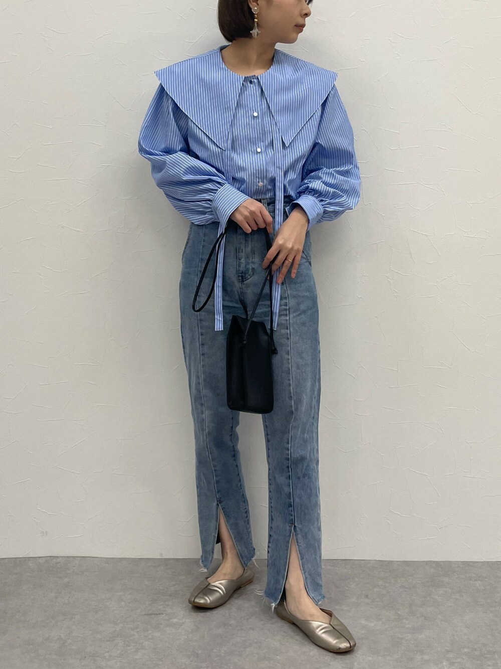 さな(nissen)のシャツ/ブラウス「BIG衿シルバーボタンブラウス(紐取り外し可能) [Soiunique]」を使ったコーディネート