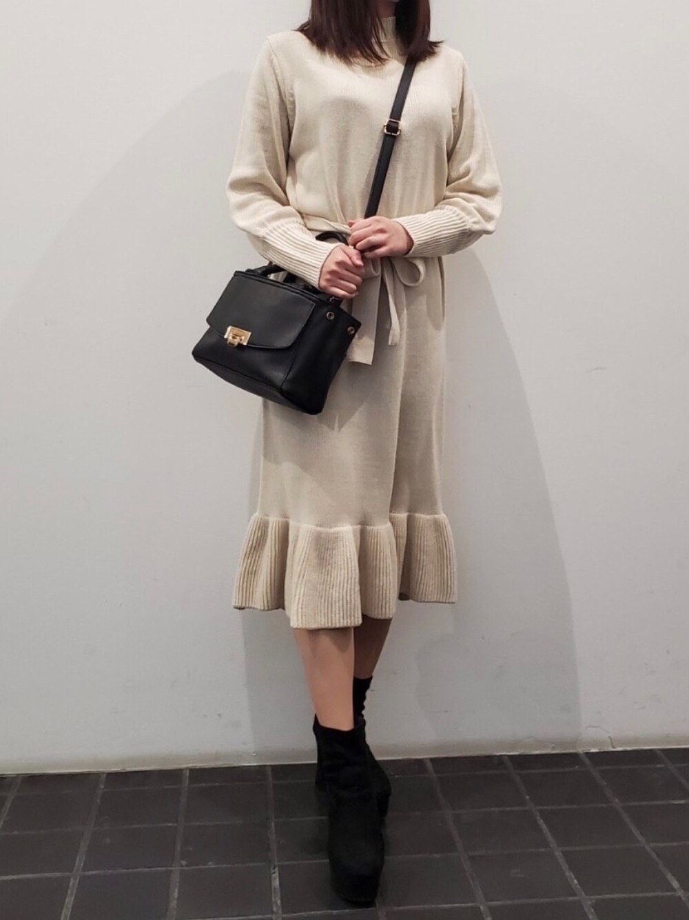 マーメイド形のワンピース これだけでオシャレなコーデが完成✨ ショートブーツで更にオシャレ度UP!
