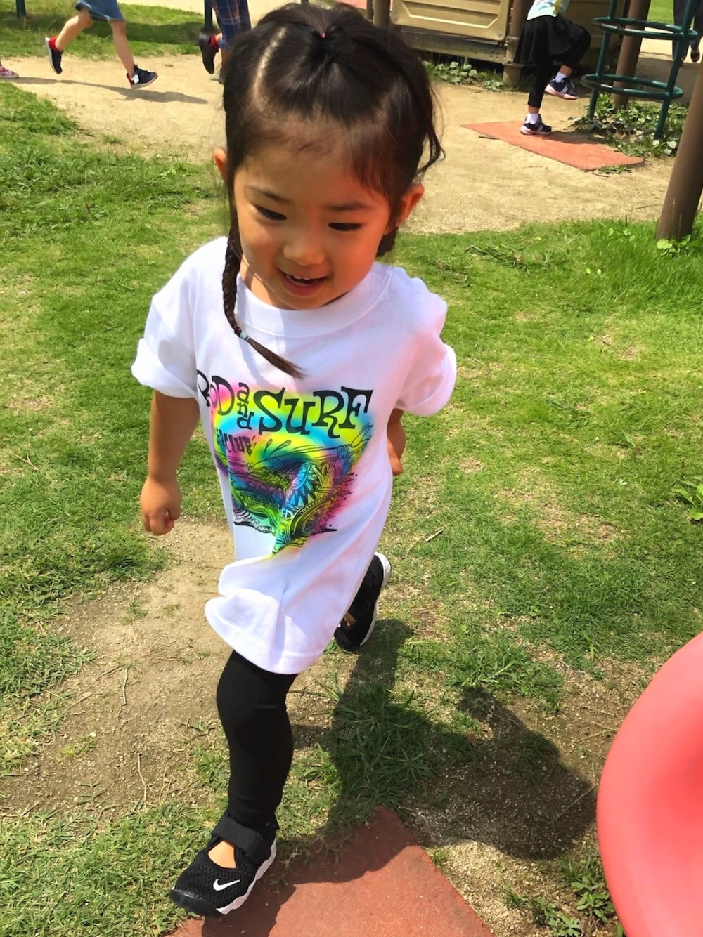 毎年購入しているspeedluckさんのエアスプレーTシャツで公園🏃‍♀️ 91cmの姉は120サイズ着用!