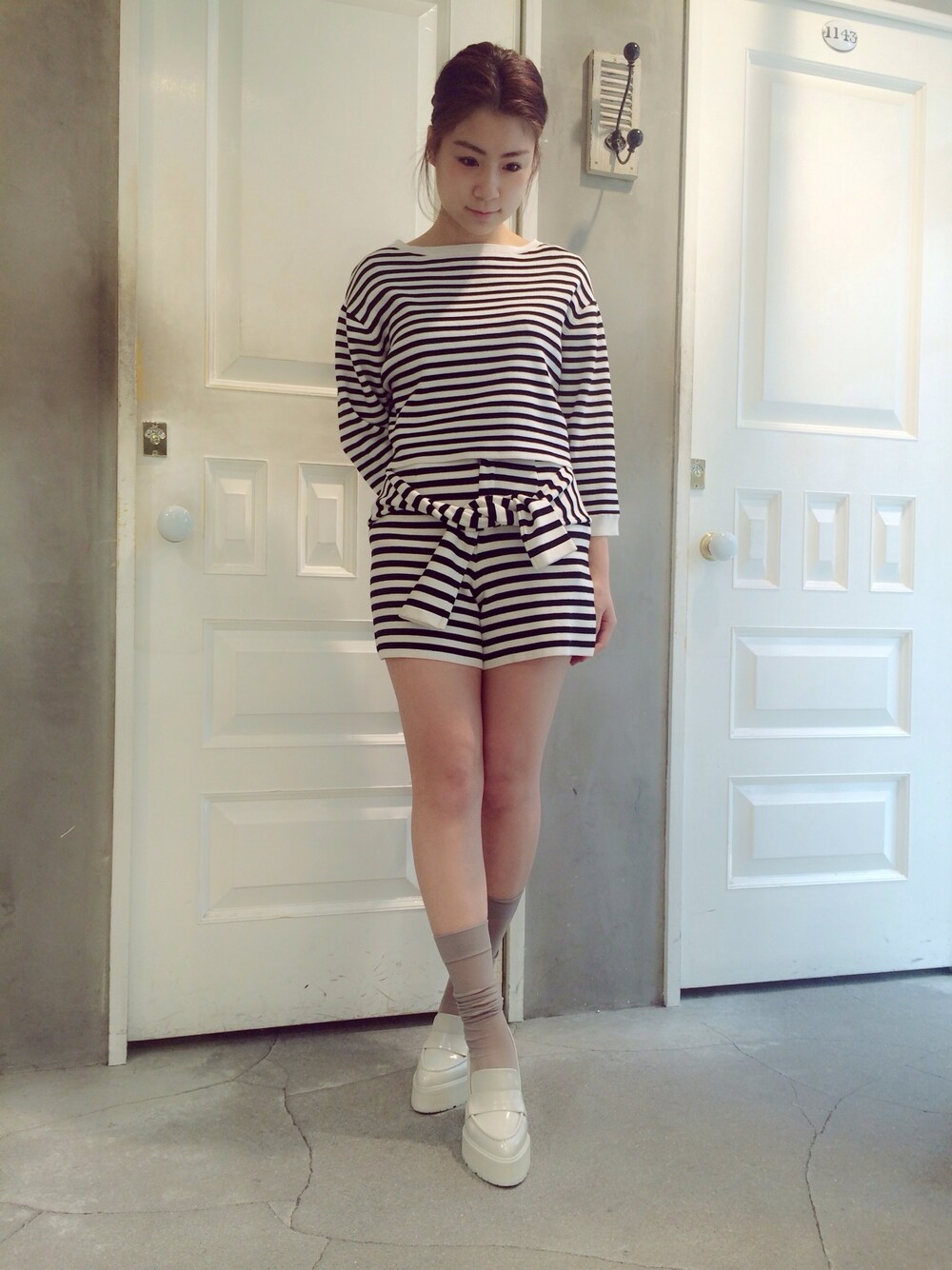 春のセットアップコーディネートです。 靴下とローファーの合わせでおしゃれ感も✨