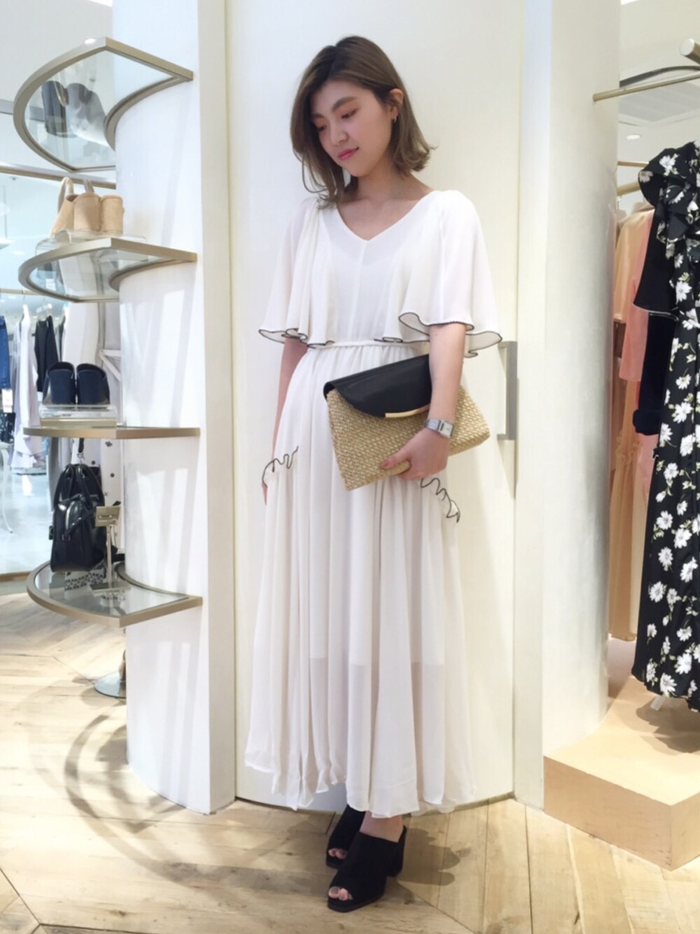 moe yoshidaのワンピース「フレアロングワンピース」を使ったコーディネート