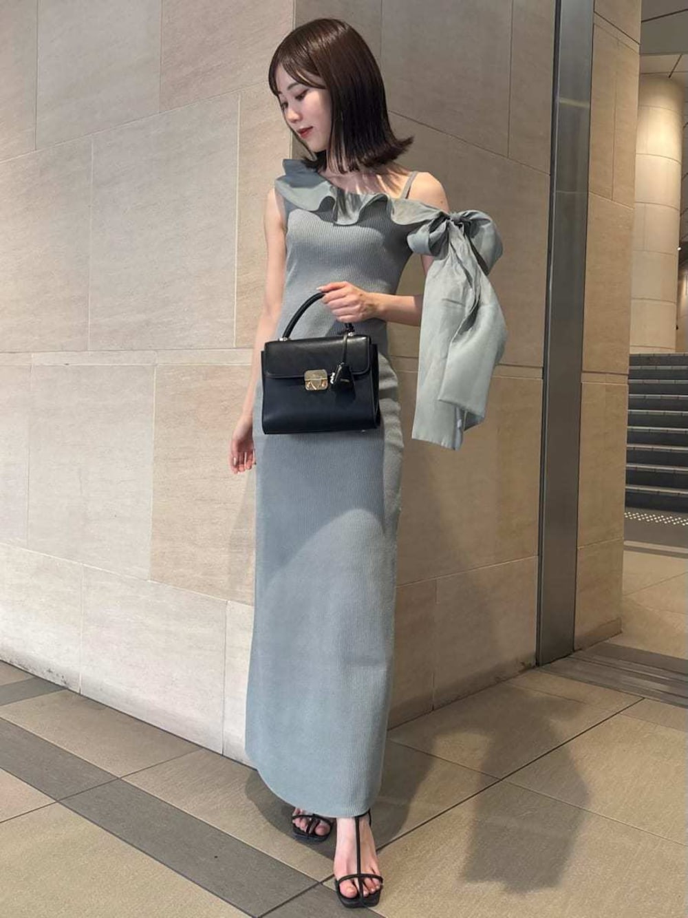 SNIDEL(SNIDEL)のワンピース「ワンショルリボンニットワンピース」を使ったコーディネート