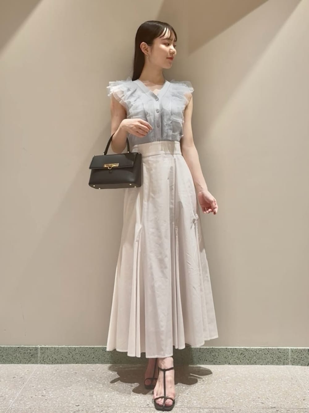 SNIDEL(SNIDEL)のニット/セーター「Sustainableチュールフリルニットプルオーバー」を使ったコーディネート