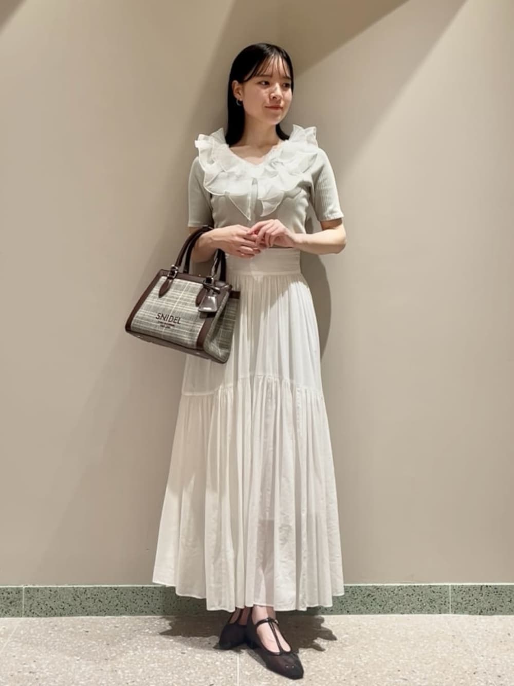 SNIDEL(SNIDEL)のTシャツ/カットソー「フリルカラーカットプルオーバー」を使ったコーディネート