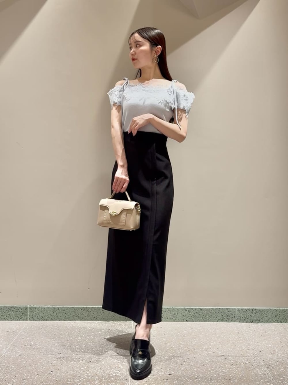 SNIDEL(SNIDEL)のニット/セーター「レースコンビハーフスリーブニットプルオーバー」を使ったコーディネート