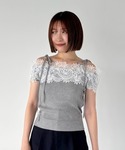 SNIDEL(SNIDEL)のニット/セーター「レースコンビハーフスリーブニットプルオーバー」を使ったコーディネート