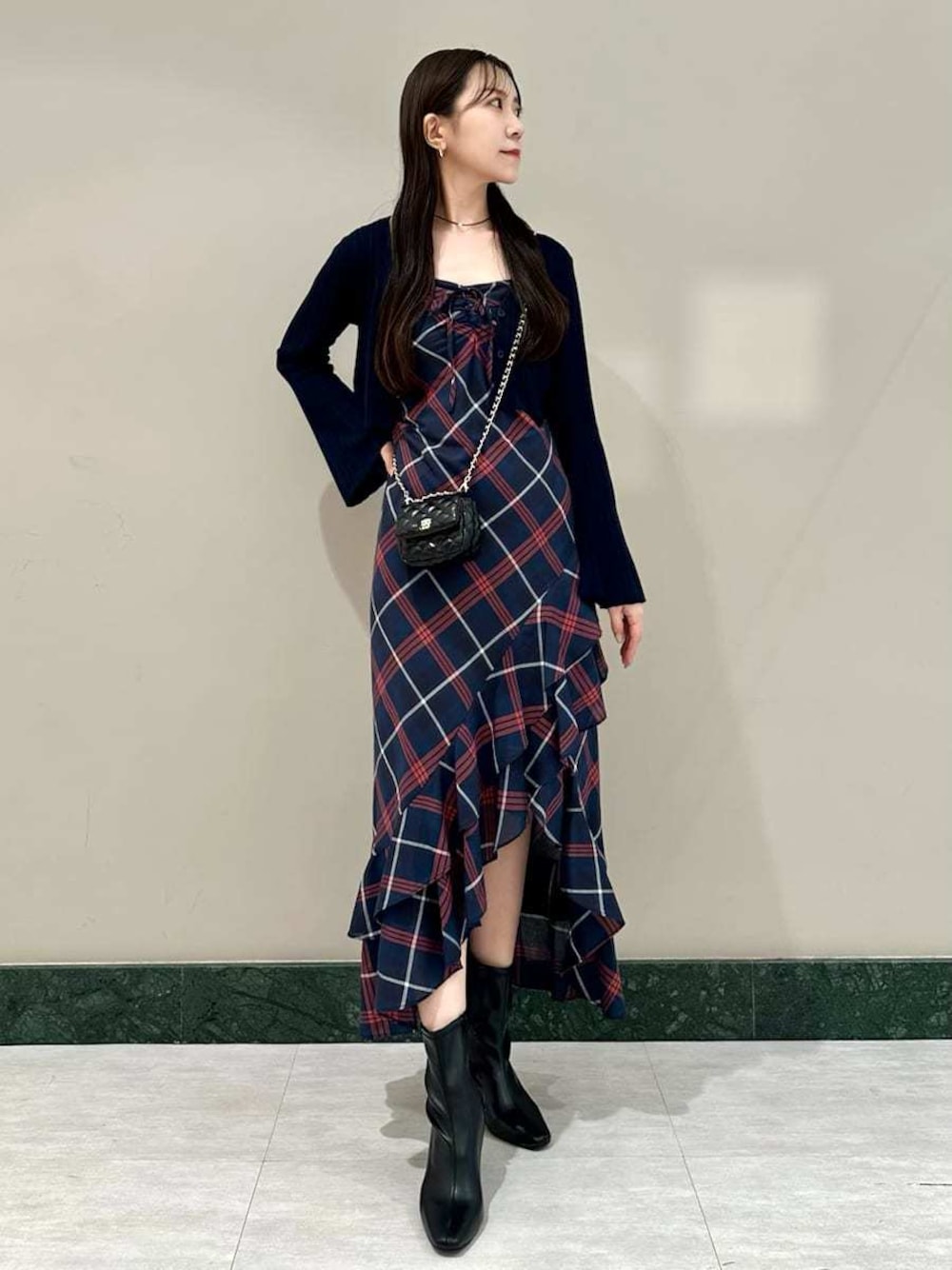 SNIDEL(SNIDEL)のワンピース「フリルチェックキャミソールワンピース」を使ったコーディネート