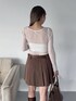 第二弾Chacottコラボ🩰 シアートップスを少しクラシカルに ミニにソックス合わせですが🧦 大人っぽくブラウントーンでまとめたのが ポイント🌰 スクエアのメガネもすっきりと見せてくれるので 子供っぽく見えたくないというコーデの時に 活躍してくれます👓 身長:157cm 店舗名:本社店