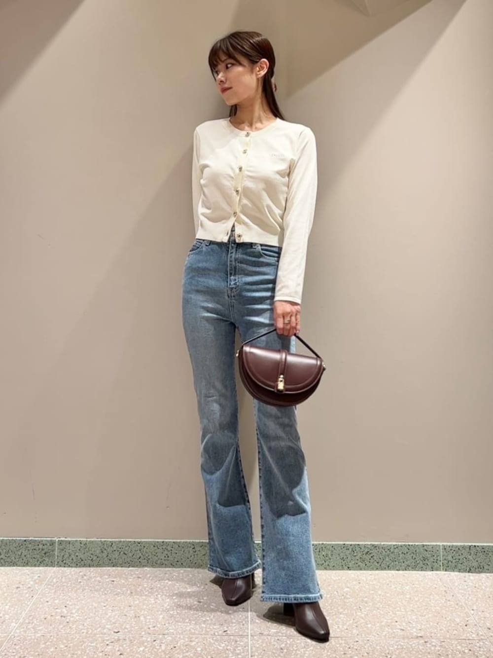 SNIDEL(SNIDEL)のカーディガン/ボレロ「フラワービジューボタンニットカーディガン」を使ったコーディネート