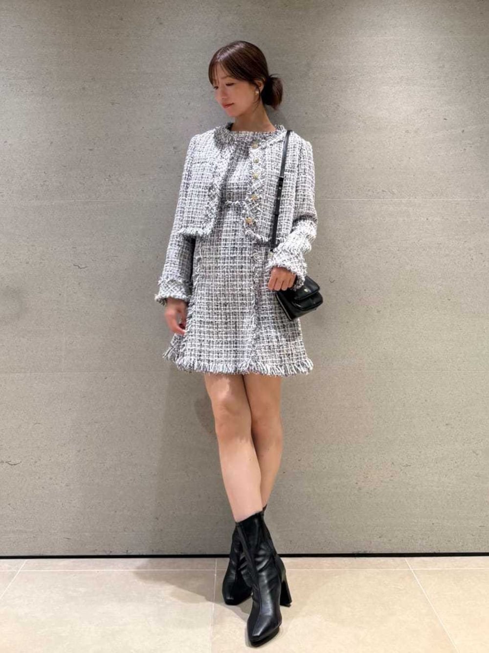 SNIDEL(SNIDEL)のワンピース「ツイードミニワンピース」を使ったコーディネート
