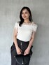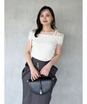SNIDEL(SNIDEL)のニット/セーター「レースコンビハーフスリーブニットプルオーバー」を使ったコーディネート