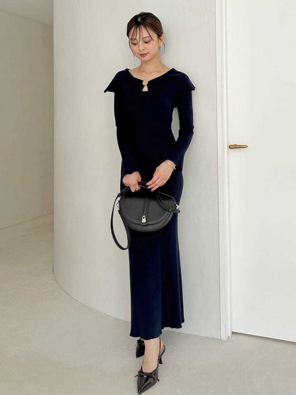 SNIDEL(SNIDEL)のワンピース「Sustainableデザインフロントニットワンピース」を使ったコーディネート