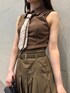 トップスのボウタイは取り外し可能でシンプルなトップスとしてもご着用いただけます♡! スカートは前スリットで抜け感をプラス◎ 今季トレンドのブラウンコーデでまとめました! 身長:156cm 店舗名:熊本鶴屋店店
