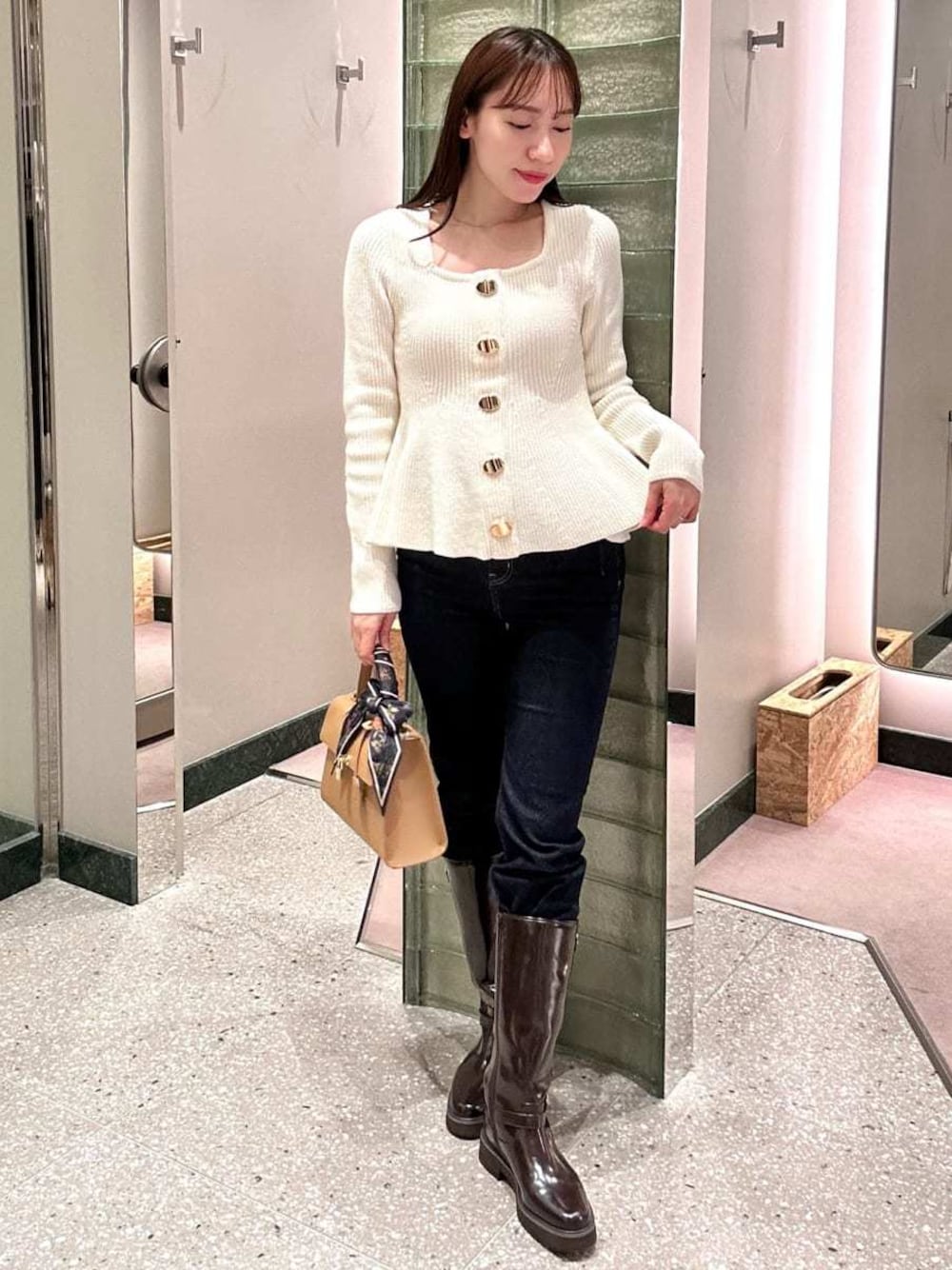 SNIDEL(SNIDEL)のニット/セーター「スクエアネックペプラムニットプルオーバー」を使ったコーディネート
