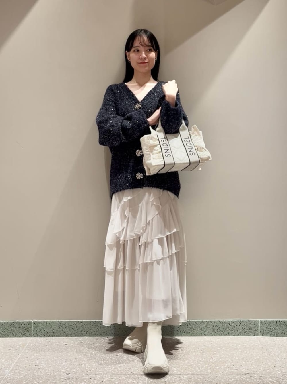 SNIDEL(SNIDEL)のカーディガン/ボレロ「ビジューリボンミドルカーディガン」を使ったコーディネート