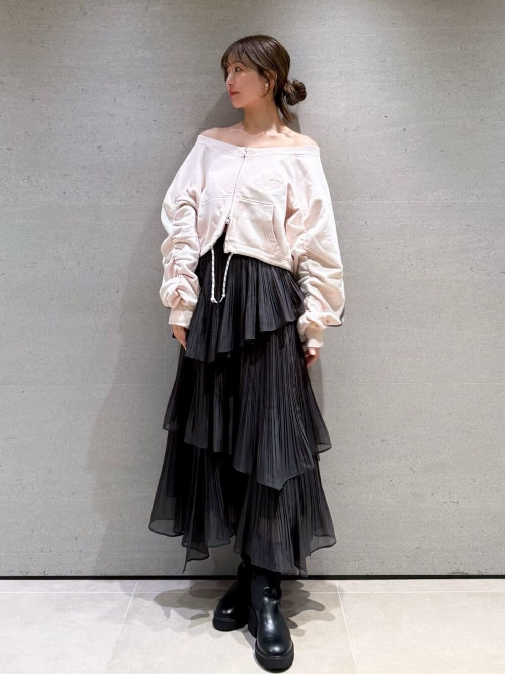 インスタライブ紹介コーデ✨ 「 NUTMEG」と 「SNIDEL」のコラボレーション! ケミカルウォッシュ加工を加えて ヴィンテージ感を出したスウェット生地でお作りした オフショルジップロゴカットプルオーバー✨ ゆるっとメンズライクなシルエットで仕上げていますが ゆったりとした襟ぐりで肩を落としてオフショルダーや、ワンショルダーでもご着用いただけます🙇♀️ 裏起毛の温かなスウェット生地を使用♡ 身長:162cm 店舗名:大丸東京店店