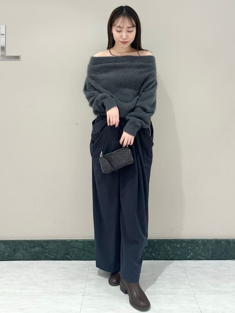 SNIDEL(SNIDEL)のニット/セーター「【HIGH QUALITY】フォックスカシミヤオフショルプルオーバー」を使ったコーディネート