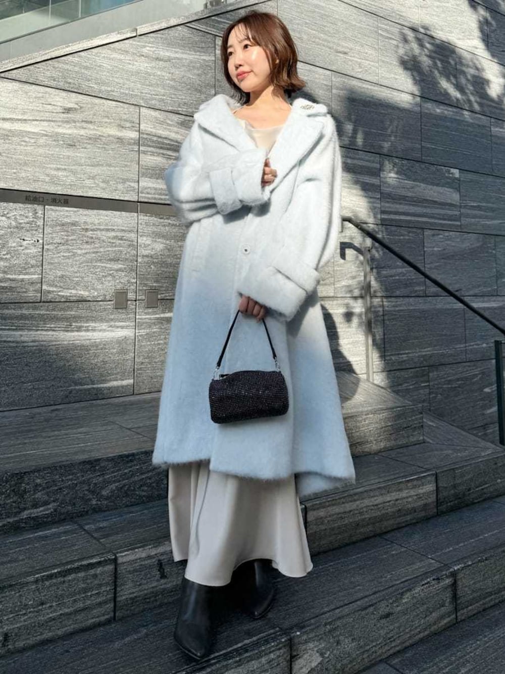 SNIDEL(SNIDEL)のチェスターコート「ブローチ付きシャギーロングコート」を使ったコーディネート