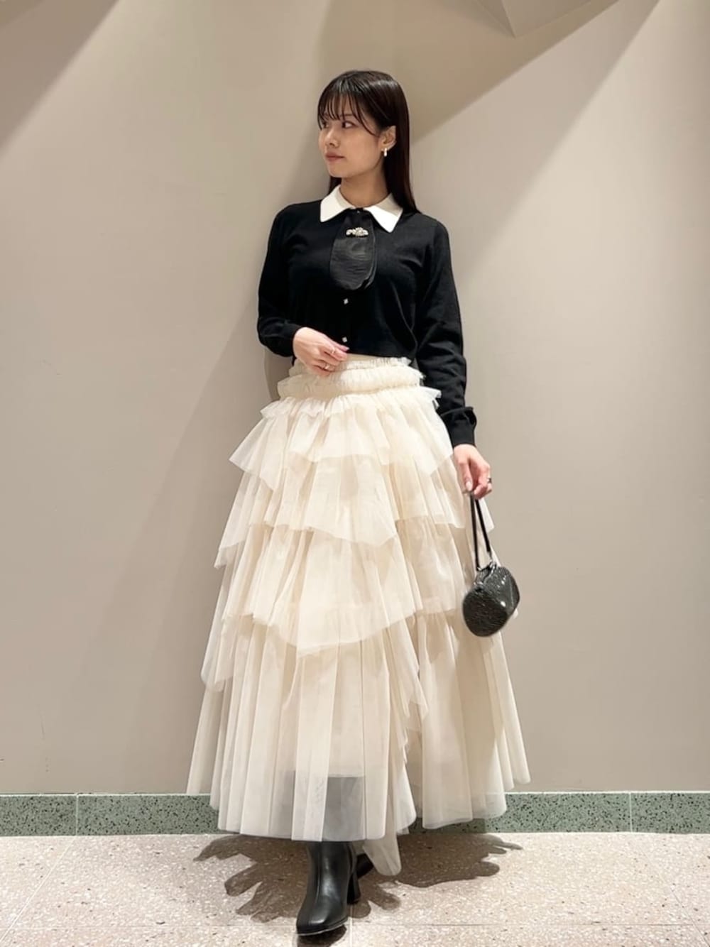 SNIDEL(SNIDEL)のカーディガン/ボレロ「タイ付きビジューカーディガン」を使ったコーディネート