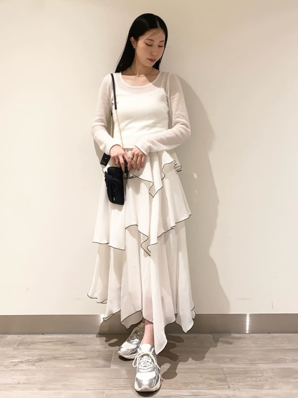 SNIDEL(SNIDEL)のワンピース「シアーイレヘムニットコンビワンピース」を使ったコーディネート